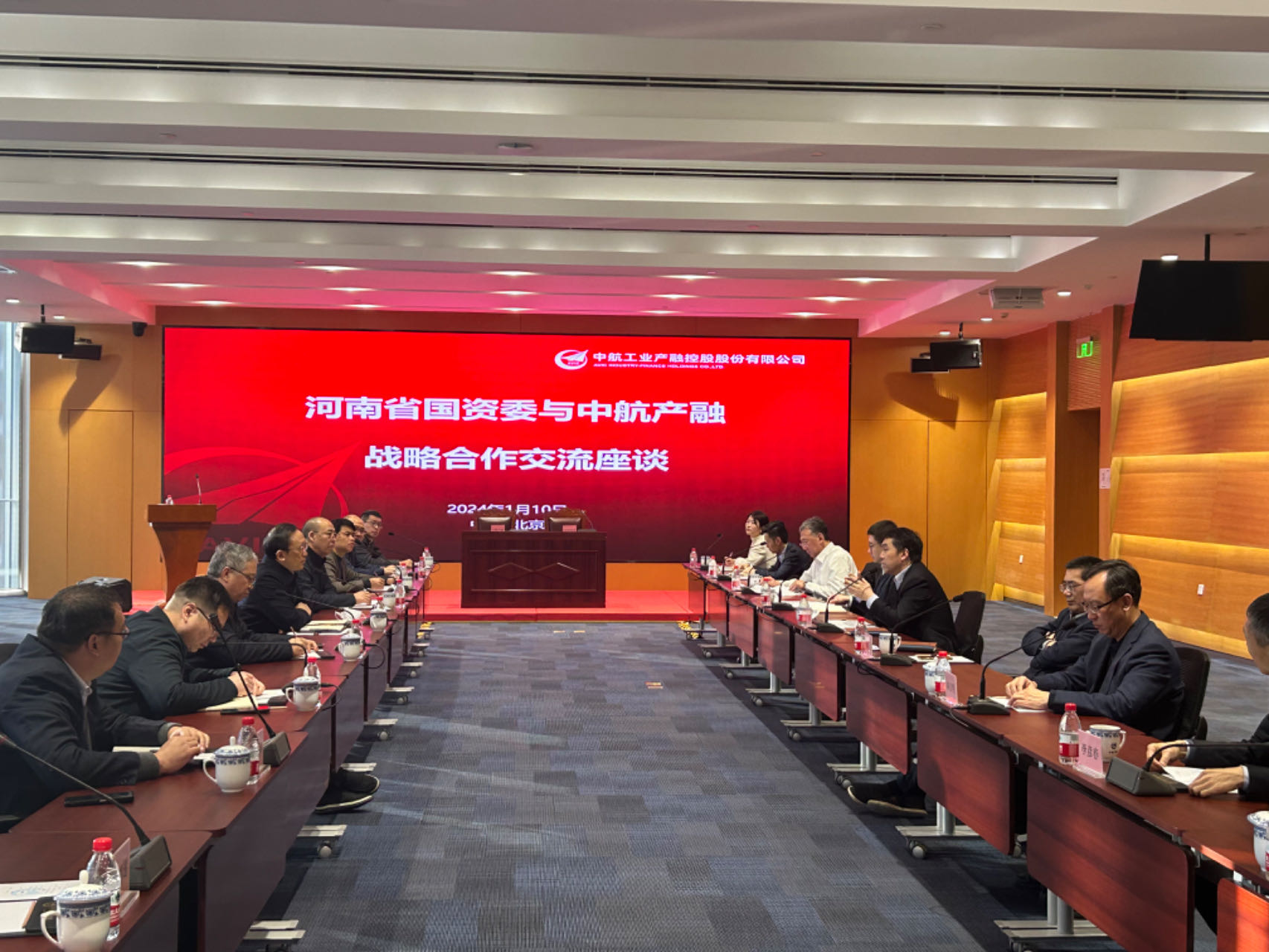 2024年1月10日,豫資控股集團黨委書記、董事長秦建斌帶隊前往北京,參加河南省政府國資委與中航工業產融控股股份有限公司(以下簡稱“中航產融”)戰略合作的簽約活動。簽約儀式前,省政府國資委黨委書記、主任李濤,中航產融黨委書記、總經理叢中等雙方相關同志進行了座…...