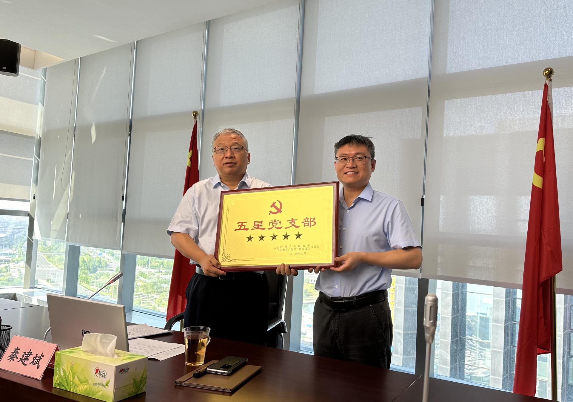 集團黨委書記、董事長秦建斌為豫資保障房黨支部頒發“五星”黨支部獎牌 2024.07.22